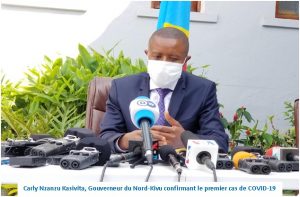 Devant toute la gamme des journalistes, à sa résidence, lors de la confirmation du premier cas de COVID-19, le Gouverneur a déclaré que « le cas confirmé est un haut cadre d’une organisation internationale travaillant à Goma ». Qui malheureusement, revenait du Nigeria, son pays natal, où il était en congé professionnel, le 18 mars via Kigali, au Rwanda, pour franchir la grande barrière de Goma, le 19 mars 2020.