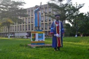 Sa thèse de doctorat est défendue le 07 mai 2022 à l’Université de Kisangani où il a obtenu la Mention Grande Distinction. Il a obtenu cette mention grâce à l’accompagnement du trio des Professeurs Ordinaires : « Jean Otemikongo Mandefu Yahisule, (Promoteur), Louis-Marie Musau Bakajika, (Co-promoteur) et Alphonse Mbate Lupiki, Membre. Malgré la constance et la rigueur dans la façon de poser les questions des membres de son jury, ce trio des professeurs l’ont conduit à avoir cette mention de grande distinction.