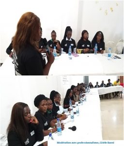 La modération est faite par Gisèle BAGHENI, journaliste de formation, parmi les grandes présentatrices des journaux de la RTCT et membre de CORACON, qui indique dès le début de la cérémonie que, “cette table ronde est organisée parce qu’il a été observé une faible représentation des femmes dans les entreprises médiatiques”.