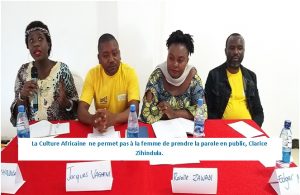 La liberté d’expression, l’Independence comportementale, économique ou rédactionnelle doivent caractériser tout journaliste, femme soit-elle, hors en Afrique, une femme libre est une pute, donc une femme de tout le monde, qui parle souvent en public, explique avec regret ,Clarisse ZIHINDULA, actrice de la société civile.