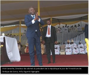 Vital Kamerhe, au nom du président a remis au nouvel évêque une jeep de couleur noire et l’espèce de 20 vaches à l’ancien évêque du diocèse de Goma, Théophile Kaboyi. Pour le compte de la présidente du Senat, Jeanine Mabunda, l’honorable Mutsiri Wabashara a lui aussi promis de remettre 20 vaches à son excellence monseigneur Willy Ngumbi.